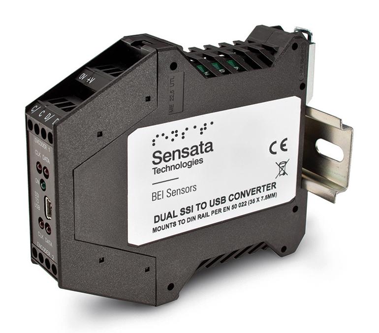 The Dual Encoder to USB Converter translates encoder position to industry standard USB 2.0 format that can be read by a computer. Each module can handle signals from two encoders. Modules are available for SSI absolute encoders, as well as quadrature incremental encoders. The module can be programmed through the USB interface for number of bits with absolute encoders. For incremental encoders, count mode (X1, X2, X4), reset, preset, and preset/reset on index are programmable through the USB input. Incremental encoder counter register length is programmable, up to 32 bits. The Encoder to USB Converter is ideal for system setup and debugging, data acquisition and PC based control applications. 3-meter USB cable included. *Optional programmable data sample function allows module to automatically capture readings on an accurate time clock. See -S in Ordering Options below.